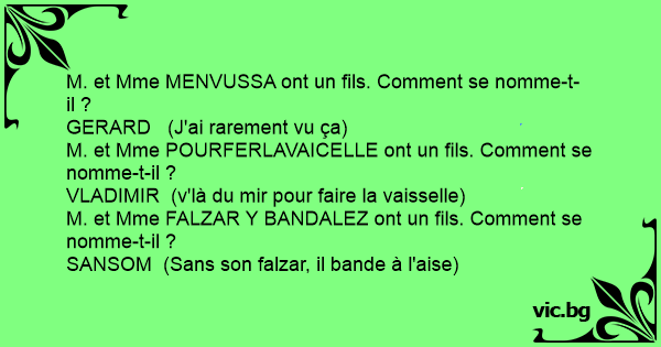 M. et Mme POURFERLAVAICELLE ont un fils. Comment se nomme-t-il ?