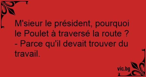 M'sieur le président, pourquoi le Poulet à traversé la route ?
