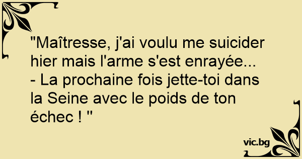 "Maîtresse, j'ai voulu me suicider hier mais l'arme s'est enrayée...