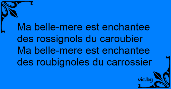 Ma belle-mere est enchantee des rossignols du caroubier<br />Ma belle-mere est enchantee des roubignoles du carrossier