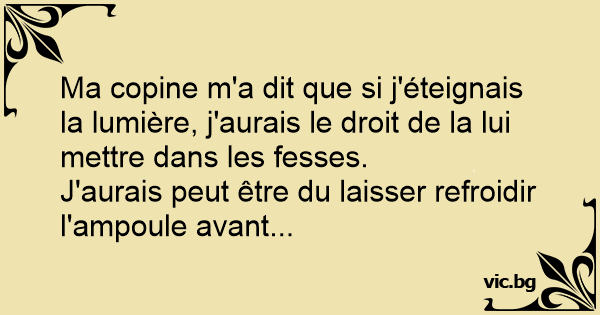 Ma copine m'a dit que si j'éteignais la lumière, j'aurais le droit de la lui mettre dans les fesses.