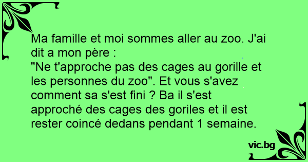 "Ne t'approche pas des cages au gorille et les personnes du zoo". Et vous s'avez comment sa s'est fini ? Ba il s'est approché des cages des goriles et il est rester coincé dedans pendant 1 semaine.