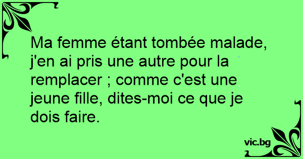 Ma femme étant tombée malade, j'en ai pris une autre pour la remplacer ; comme c'est une jeune fille, dites-moi ce que je dois faire.