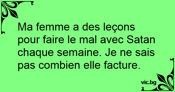 Ma femme a des leçons pour faire le mal avec Sатаn chaque semaine. Je ne sais pas combien elle facture.