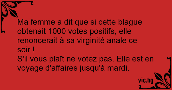 Ma femme a dit que si cette blague obtenait 1000 votes positifs, elle renoncerait à sa virginité аnаlе ce soir !
