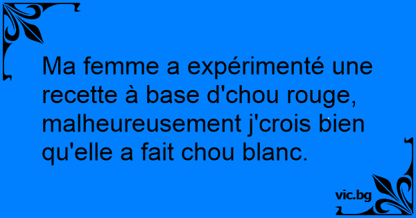 Ma femme a expérimenté une recette à base d'chou rouge, malheureusement j'crois bien qu'elle a fait chou blanc.