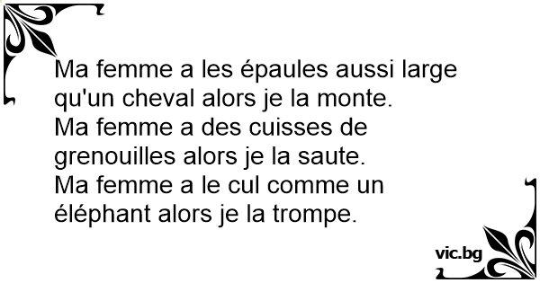Ma femme a des cuisses de grenouilles alors je la saute.