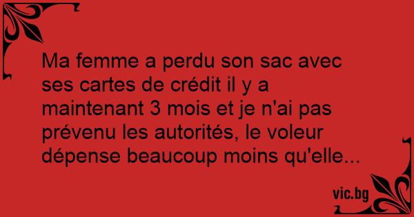 Ma femme a perdu son sac avec ses cartes de crédit il y a maintenant 3 mois et je n'ai pas prévenu les autorités, le voleur dépense beaucoup moins qu'elle...