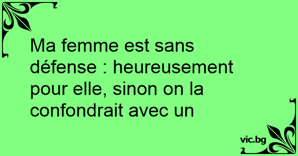 Ma femme est sans défense : heureusement pour elle, sinon on la confondrait avec un éléphant.