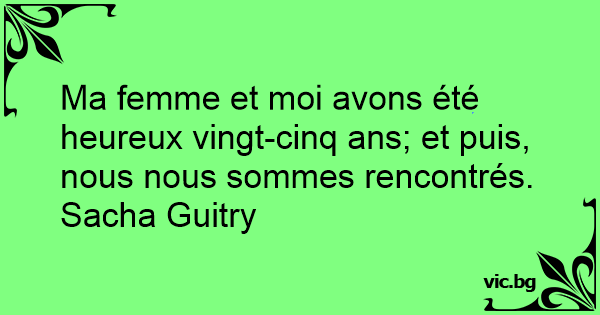 Ma femme et moi avons été heureux vingt-cinq ans; et puis, nous nous sommes rencontrés.