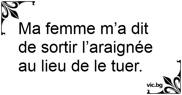 Ma femme m’a dit de sortir l’araignée au lieu de le tuer.