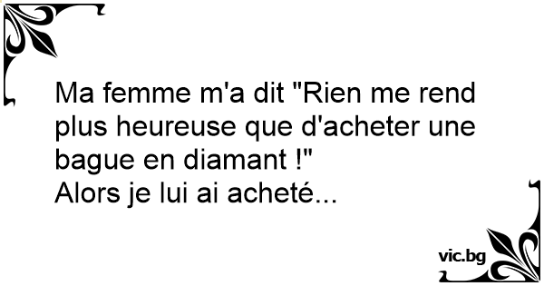 Ma femme m'a dit "Rien me rend plus heureuse que d'acheter une bague en diamant !"