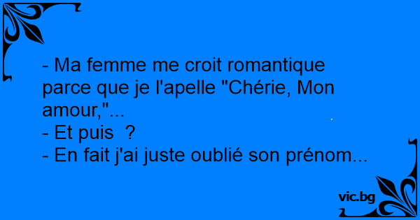 - Ma femme me croit romantique parce que je l'apelle "Chérie, Mon amour,"...
