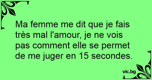 Ma femme me dit que je fais très mal l'amour, je ne vois pas comment elle se permet de me juger en 15 secondes.