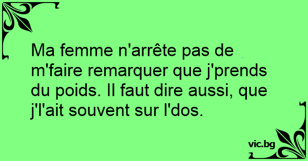 Ma femme n'arrête pas de m'faire remarquer que j'prends du poids. Il faut dire aussi, que j'l'ait souvent sur l'dos.
