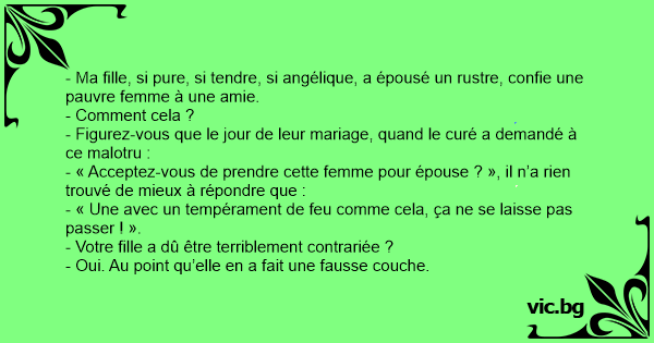 - Figurez-vous que le jour de leur mariage, quand le curé a demandé à ce malotru :
