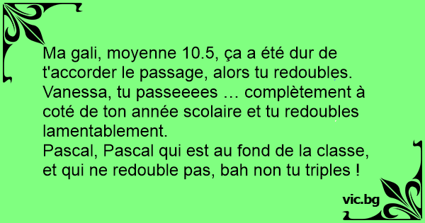 Ma gali, moyenne 10.5, ça a été dur de t'accorder le passage, alors tu redoubles.