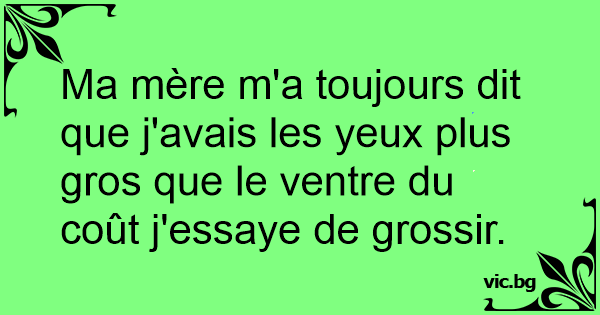 Ma mère m'a toujours dit que j'avais les yeux plus gros que le ventre du coût j'essaye de grossir.