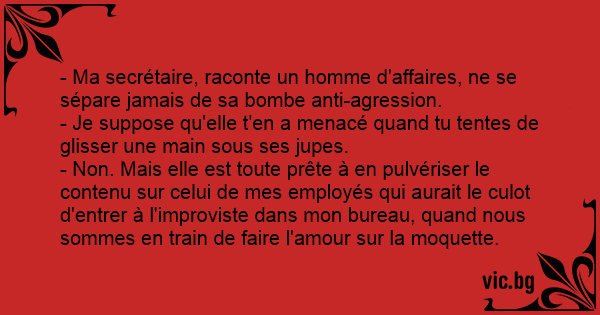 - Ma secrétaire, raconte un homme d'affaires, ne se sépare jamais de sa bombe anti-agression.