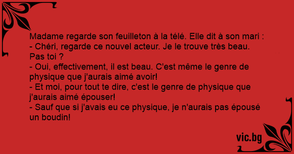 - Sauf que si j'avais eu ce physique, je n'aurais pas épousé un boudin!