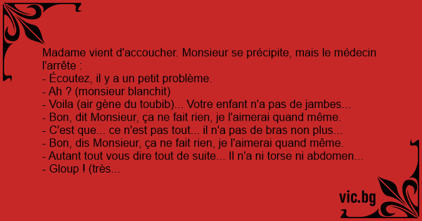 - Voila (air gène du toubib)... Votre enfant n'a pas de jambes...