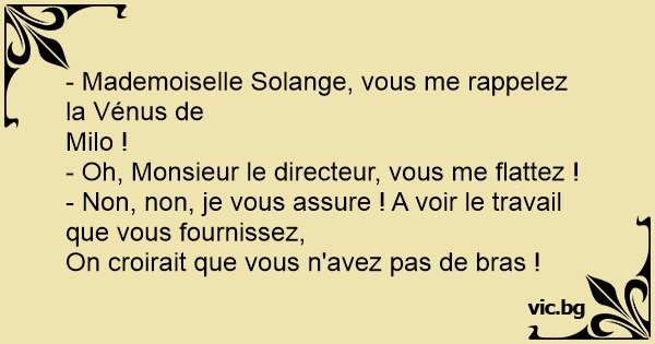 - Mademoiselle Solange, vous me rappelez la Vénus de