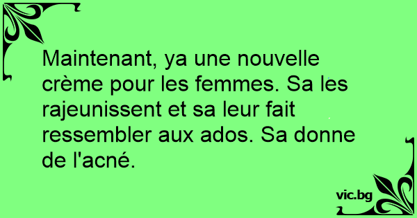 Maintenant, ya une nouvelle crème pour les femmes. Sa les rajeunissent et sa leur fait ressembler aux ados. Sa donne de l'acné.