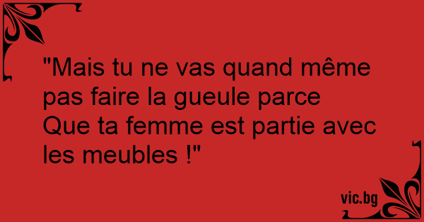 Que ta femme est partie avec les meubles !"