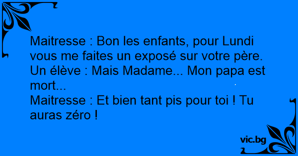 Maitresse : Bon les enfants, pour Lundi vous me faites un exposé sur votre père.