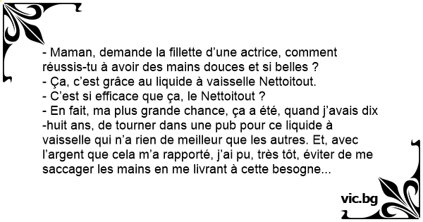 - Maman, demande la fillette d’une actrice, comment réussis-tu à avoir des mains douces et si belles ?