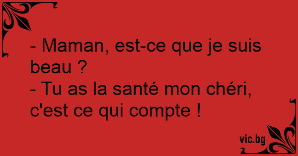 - Tu as la santé mon chéri, c'est ce qui compte !
