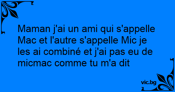 Maman j'ai un ami qui s'appelle Mac et l'autre s'appelle Mic je les ai combiné et j'ai pas eu de micmac comme tu m'a dit
