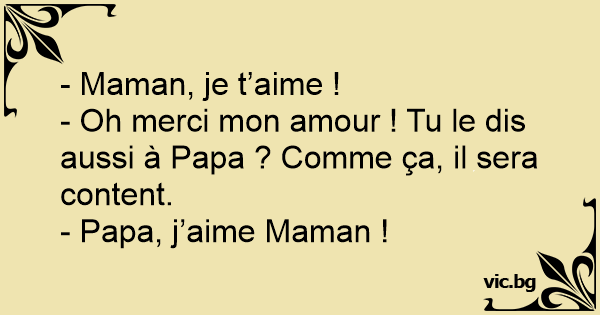 - Oh merci mon amour ! Tu le dis aussi à Papa ? Comme ça, il sera content.