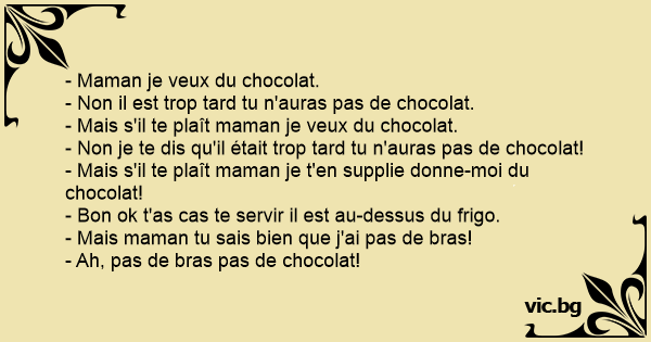 - Non je te dis qu'il était trop таrd tu n'auras pas de chocolat!