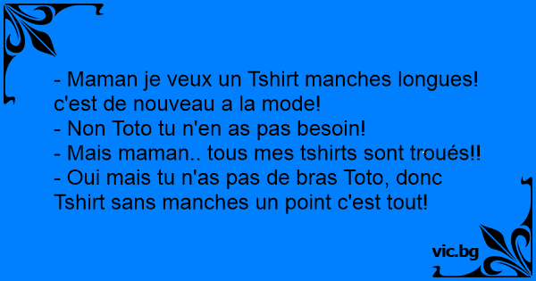 - Oui mais tu n'as pas de bras Toto, donc Tshirt sans manches un point c'est tout!
