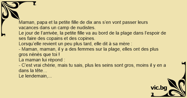 - Maman, maman, il y a des femmes sur la plage, elles ont des plus gros nénés que toi !