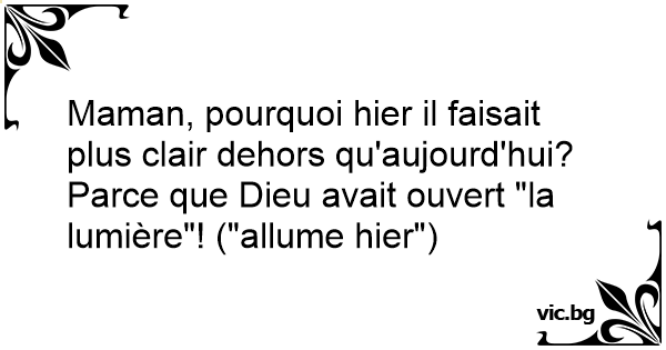 Maman, pourquoi hier il faisait plus clair dehors qu'aujourd'hui?