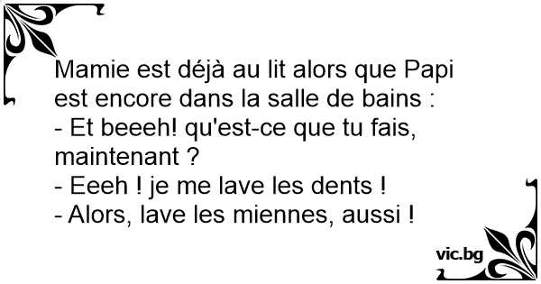 Mamie est déjà au lit alors que Papi est encore dans la salle de bains :
