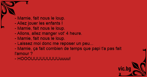 - Mamie, ça fait combien de temps que papi t'a pas fait l'amour ?