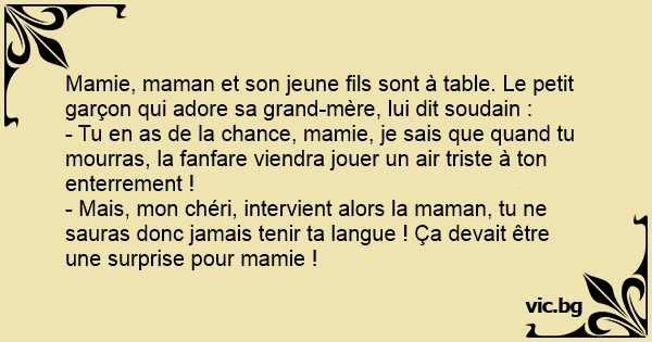 - Tu en as de la chance, mamie, je sais que quand tu mourras, la fanfare viendra jouer un air triste à ton enterrement !