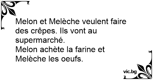 Melon achète la farine et Melèche les oeufs.