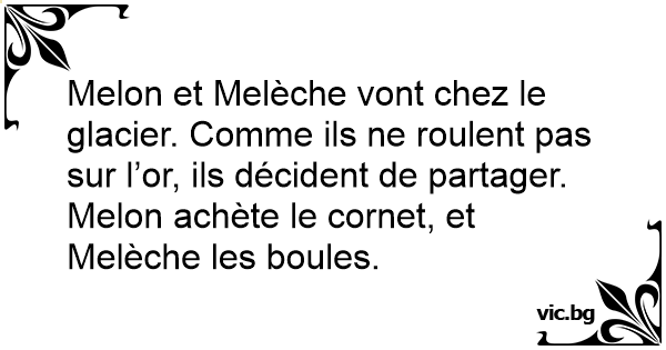Melon et Melèche vont chez le glacier. Comme ils ne roulent pas sur l’or, ils décident de partager.