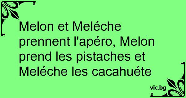Melon et Meléche prennent l'apéro, Melon prend les pistaches et Meléche les cacahuéte