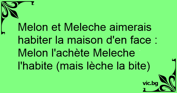 Melon et Meleche aimerais habiter la maison d'en face : Melon l'achète Meleche l'habite (mais lèche la bite)