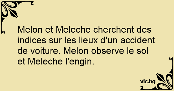 Melon et Meleche cherchent des indices sur les lieux d'un accident de voiture. Melon observe le sol et Meleche l'engin.