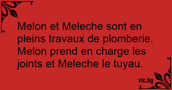 Melon et Meleche sont en pleins travaux de plomberie. Melon prend en charge les joints et Meleche le tuyau.