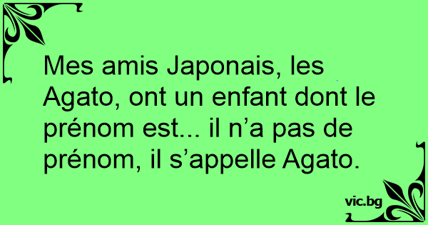 Mes amis Japonais, les Agato, ont un enfant dont le prénom est... il n’a pas de prénom, il s’appelle Agato.