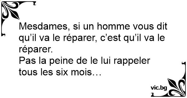 Mesdames, si un homme vous dit qu’il va le réparer, c’est qu’il va le réparer.
