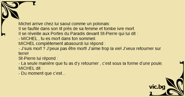Il se réveille aux Portes du Paradis devant St-Pierre qui lui dit :