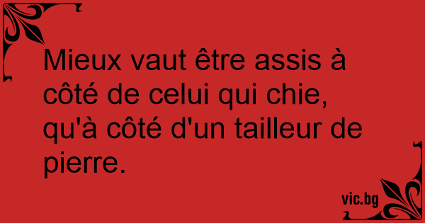 Mieux vaut être assis à côté de celui qui chie, qu'à côté d'un tailleur de pierre.